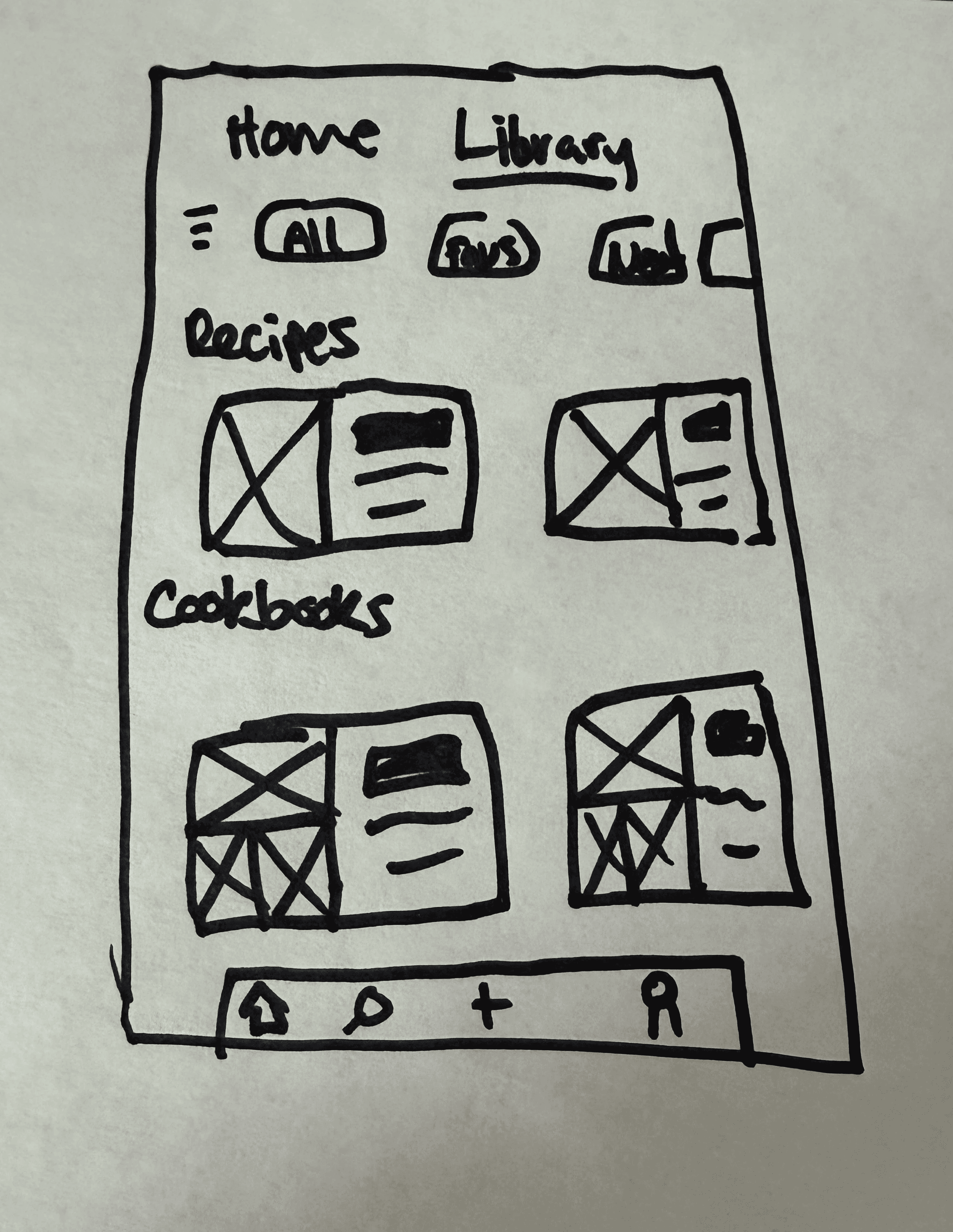 Hand drawn wireframes