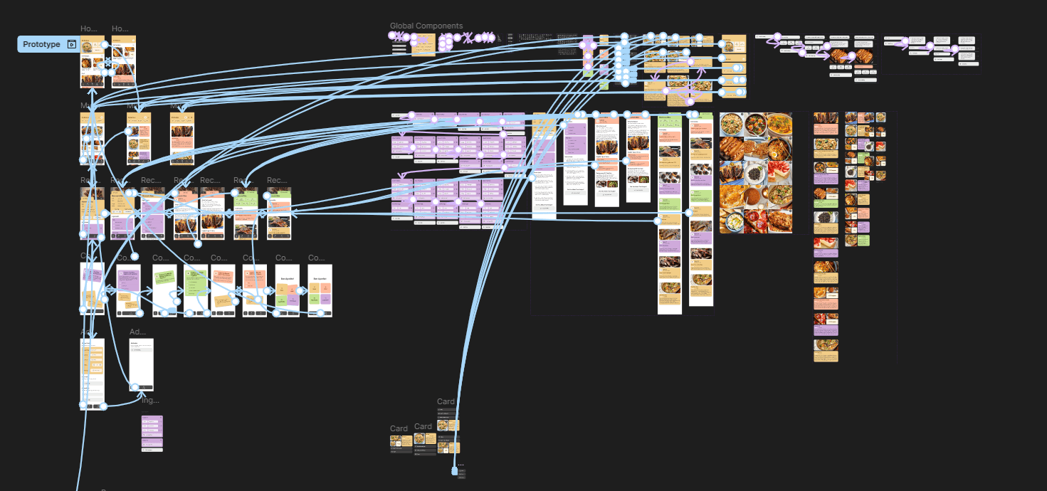 To ensure I stayed on track with the time constraint I initially set, I limited my scope to only include designs for the home screen, saved recipes, recipe details, cooking mode, & adding a new recipe.