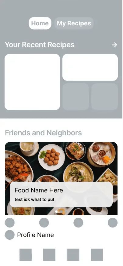 Feedback collected early during wireframing highlighted a desire for restructured homepage layout. Users wanted quicker access around a users more commonly used & popular recipes recipes but didn't find the section around their created recipes as helpful.